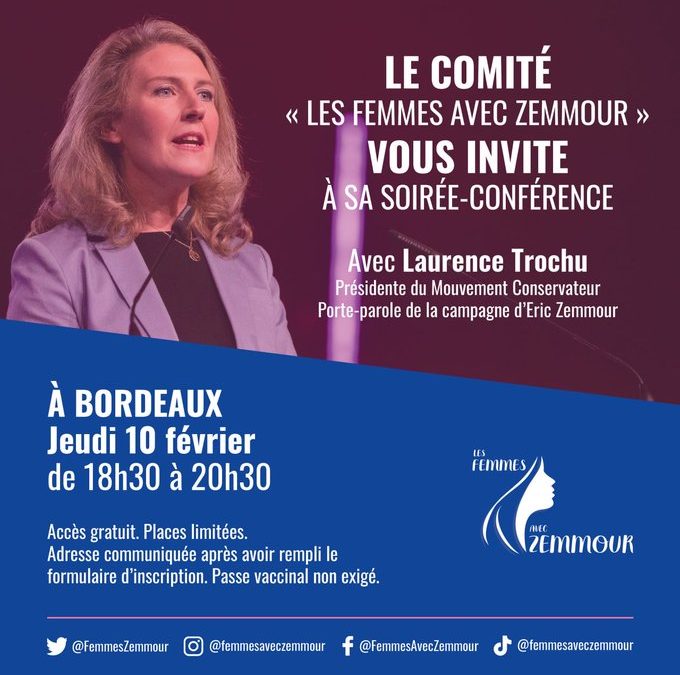 Discours de Laurence Trochu, porte-parole d’Eric Zemmour, lors de l’événement organisé par Les Femmes avec Zemmour le 10/02/2022 à Bordeaux.
